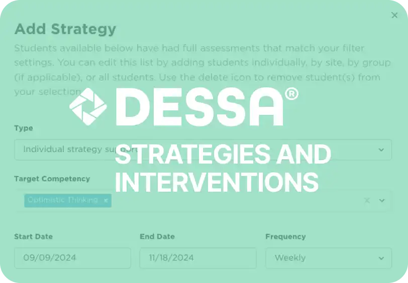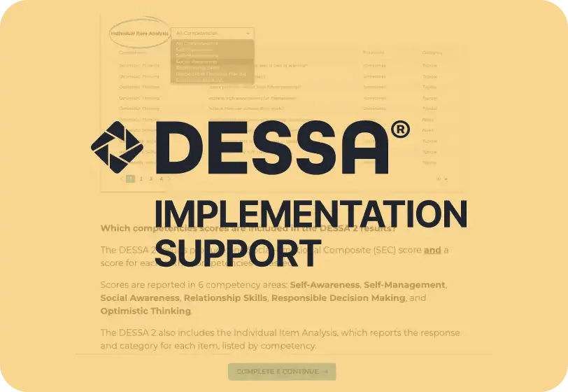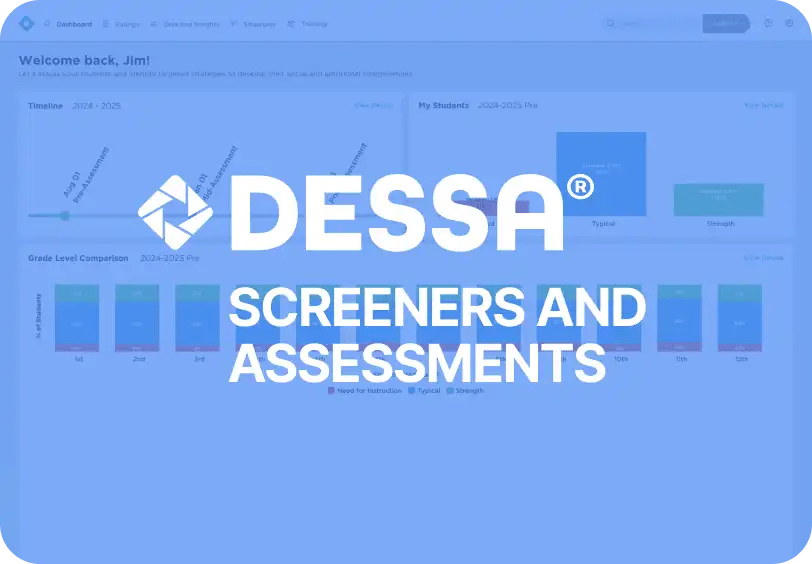 The DESSA System uses trusted, evidence-based assessments and screeners to measure students’ critical resilience skills, identify strengths, and support growth with data-driven instructional resources.